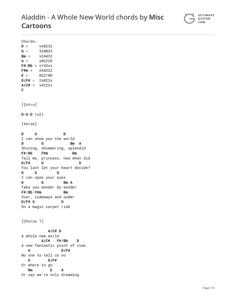 A Whole New World Chord Gitar / A whole new world chords by disney. A Whole New World Chord Gitar - A a#dim7 bm a dazzling place i never knew d7/a a/g d/f# but when i'm way up here.