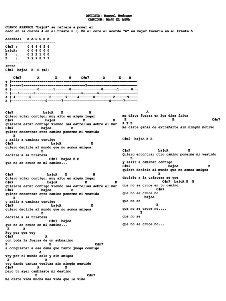 Manuel Medrano Bajo El Agua Letra Guitarra - Bajo el agua — manuel medrano.