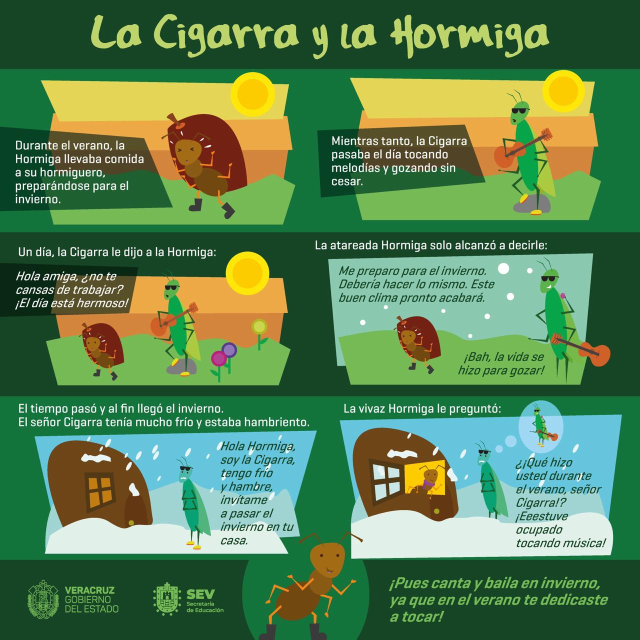 La Cigarra Y La Hormiga Con Moraleja : La hormiga, de momento, no dijo nada; La Cigarra Y La Hormiga Con Moraleja / Ven aqui, descansa bajo la sobra de este arbol mientras canto para ti —dijo la cigarra a su amiga.
