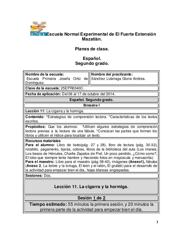 Planificacion Espanol 2do Leccion 11 La Cigarra Y La Hormiga - La cigarra era feliz disfrutando del verano: