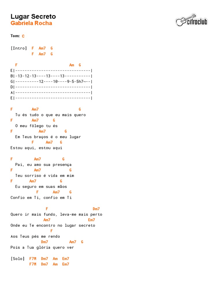 Lugar Secreto Acordes / Letras, acordes y tabs para guitarra, bajo y ukulele. Lugar Secreto Acordes / F7m(9) aos teus pes, me rendo.