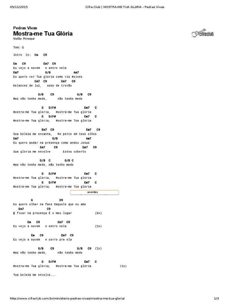 Cifra Mostra Me Tua Gloria Pedras Vivas Lazer Entretenimento Geral - Letra de gloria la letra de gloria del artista pedras vivas no es todavia presente en nuestro database.