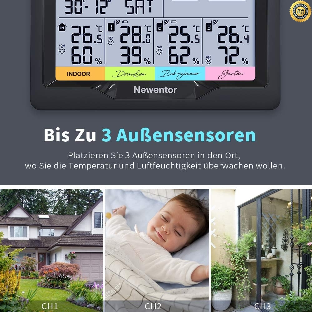 Newentor Weather Station Wireless - Newentor indoor outdoor thermometer has wwvb function, it can correct current time. Newentor Weather Station Wireless / Limited time sale easy return.