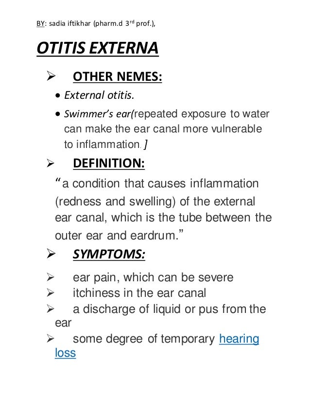 Otic Products 2 Ppt Download - Otitis externa is most commonly caused by infection (usually bacterial, although occasionally fungal), but it may also be associated with a variety of 26.