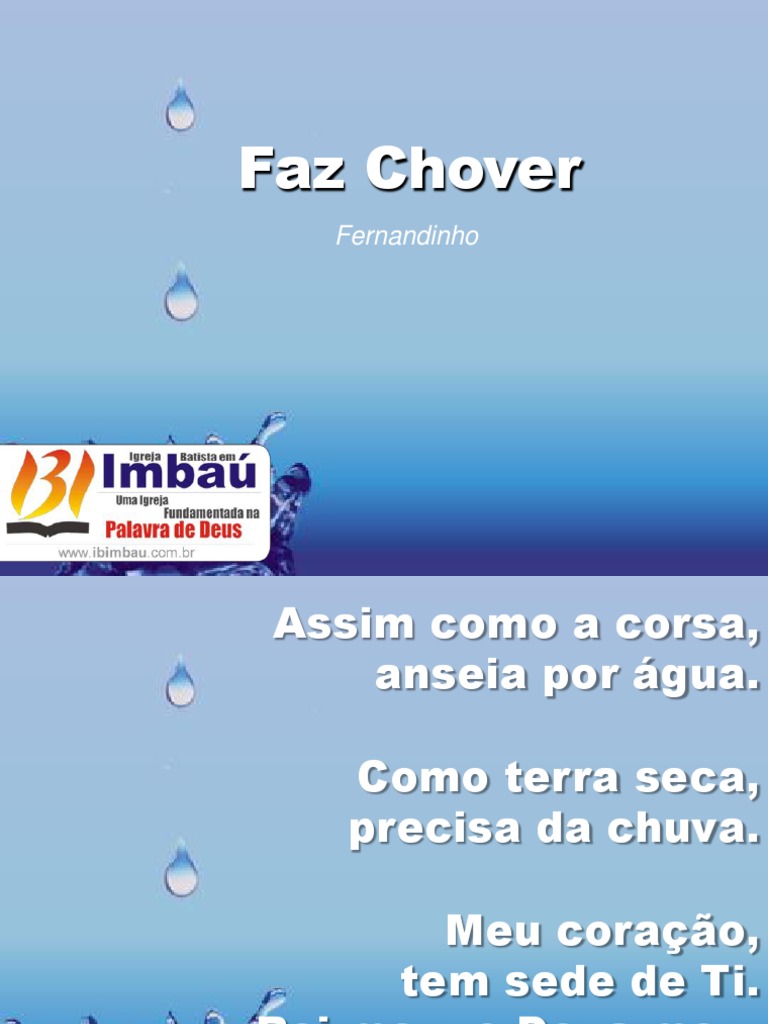 Faz Chover Fernandinho - Faz chover, senhor e derrama sobre nos aguas que limpam, aguas que jorram aguas que curam enfermidades aguas que regam e que transbordam todo o meu ser.
