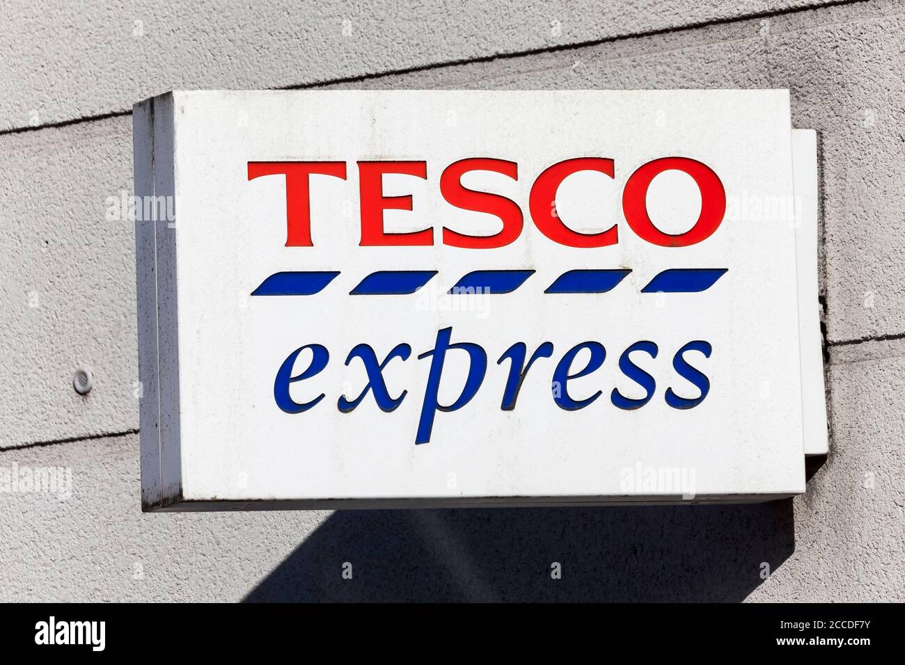Tesco Express Logo : What's the difference between a tesco express and regular? Tesco Express Logo : Tesco express logo advertising sign outside its retail supermarket store in st helen`s road.
