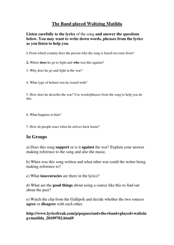 Waltzing Matilda Lyrics Pogues - Done so they gave me a tin hat and they gave me a gun and they sent me away to the war and the band played waltzing matilda as we sailed away from the quay and amidst.