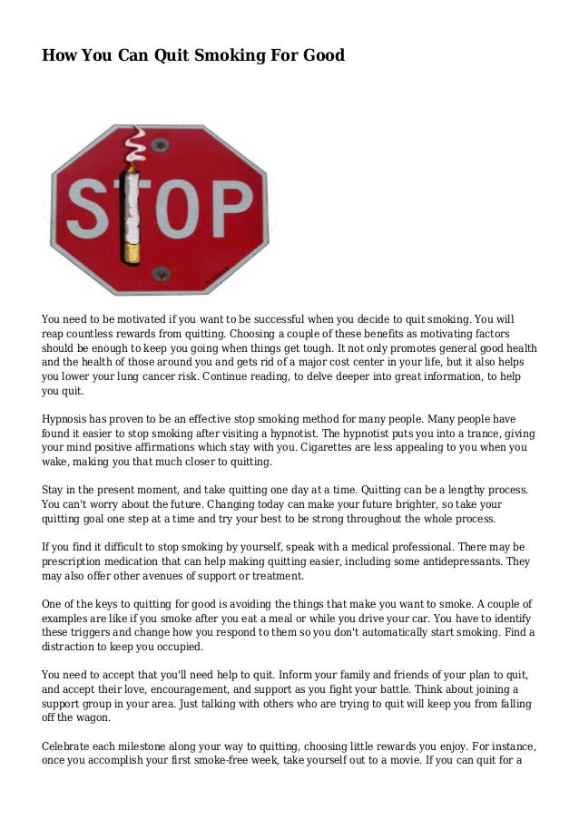 How You Can Quit Smoking For Good - Smoke which is over about 2 years old loses most of its negative power, but it still.
